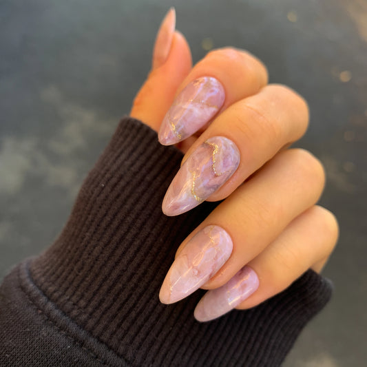 • Angel Dust press on nehty krátké hranaté - světle růžové nehty s  jemnými třpytkami